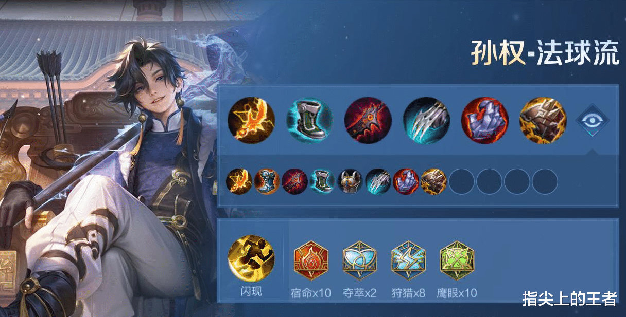 孙权的出装目前只有两个派系,逐风流,或者破晓流,不用非得固定玩哪一种,可以看对面的防具而随时更改。