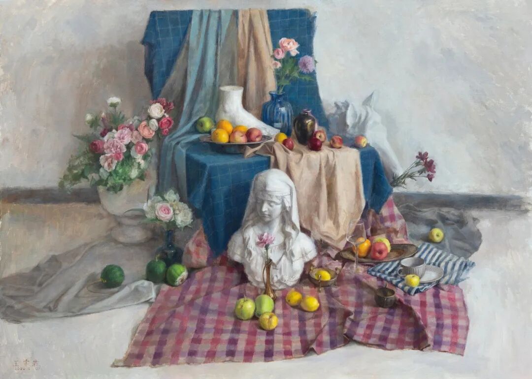 王常霖 《带石膏像的静物》 布面油画 120×80cm 2022