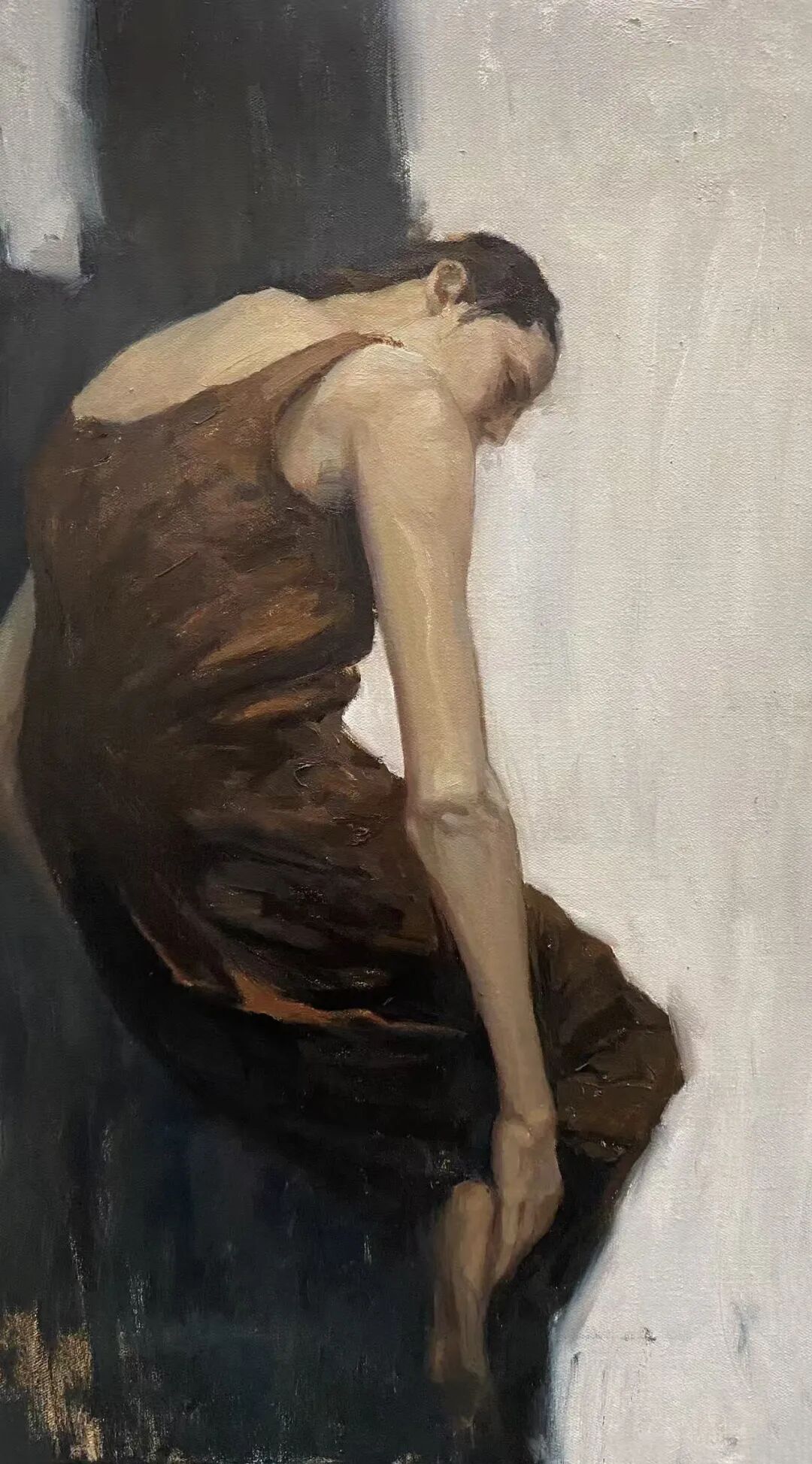 刘宇婷,2021年,研究生毕业于南京艺术学院,油画专业。我一直关心那些被压抑的情绪——它们不再以剧烈的姿态出现,而是潜伏在人的表情、姿势与空间的缝隙里。人物不再是个体的肖像,而是“群像的孤独”的象征:他们共享着同一种安静的痛感。光线与色彩的分层,不只是形式语言,更是一种心理层的语言:它们共同构成了“表象之下的暗流”。我的作品正是记录那种正在被表象吞噬的沉默。