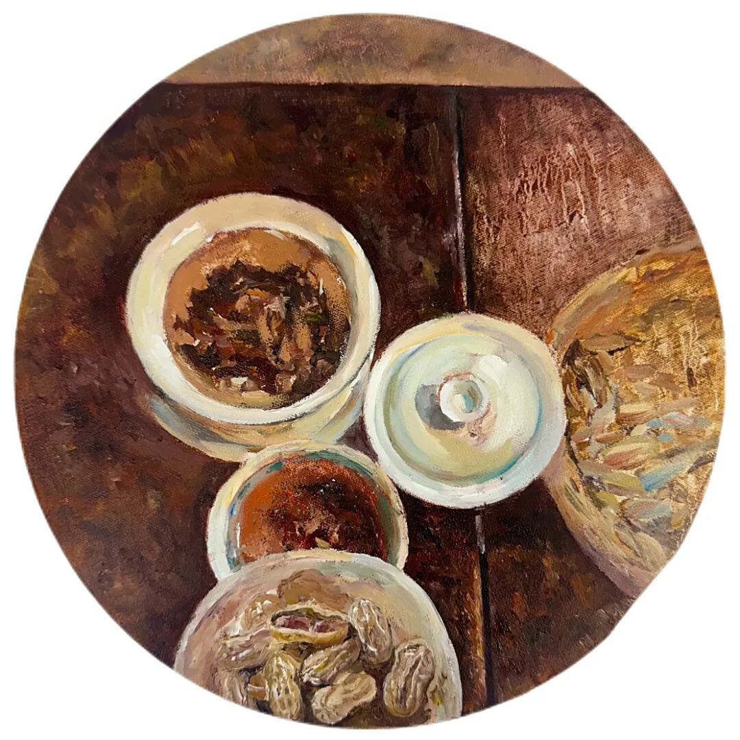 兰静萱 《九盏茶事未央》其二 布面油画 直径30cm 2025