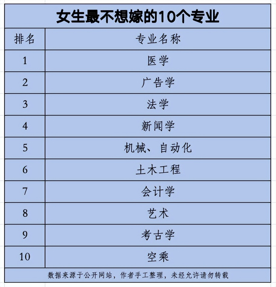 相关机构同样进行了盘点,尤其是即将提到的榜单:女生最不想嫁的专业排名。