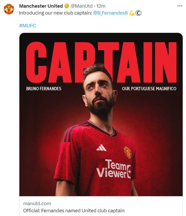 果不其然,上赛季曼联的队副B费转正了。在马奎尔卸任曼联队长一职、美国巡回赛正式开打之前,曼联官方宣布B费将会担任曼联的新队长。曼联官方的宣布,在12分钟的时间里获得了4万多个赞,等于每分钟点赞3千多次,或许这也能看出B费当选曼联队长的实至名归。