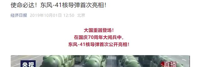 经济日报所发布《使命必达!东风-41核导弹首次亮相!》