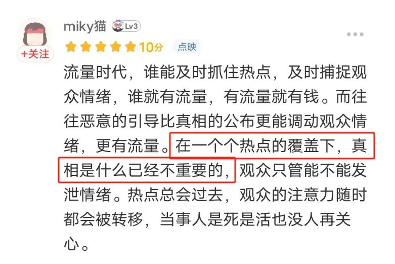 三个被网络暴力裹挟的人,就是当下网络环境的缩影,在流量的驱使下,真相不再重要,吸引眼球、收割热度才是王道。
