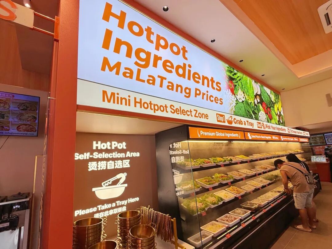 这种形式更类似于杨国福、张亮等麻辣烫品牌的就餐形式,消费者进店后,可自取小锅与夹子,在自选区自由搭配食材与汤底,最终按重量计价。