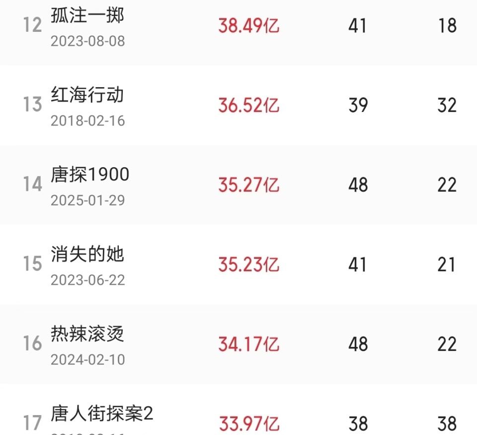 目前,《唐探1900》与排名第十三的《红海行动》之间还有约1.22亿人民币的差距。虽然影片的日票房已降至300万人民币以内,想要超越《红海行动》似乎有些困难,但这一成绩已经足以证明其在中国电影史上的重要地位。
