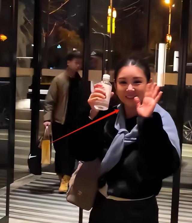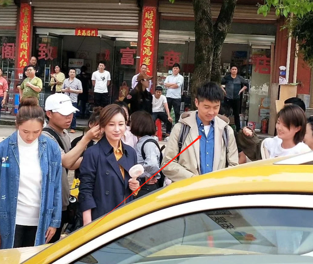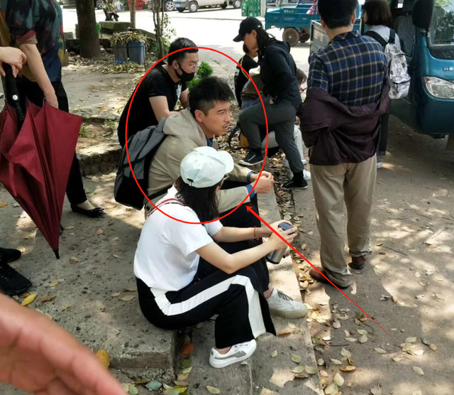 和秦海璐拍电视剧被偶遇时,背着背包站在秦海璐身旁,不知道的还以为是人家的助理。