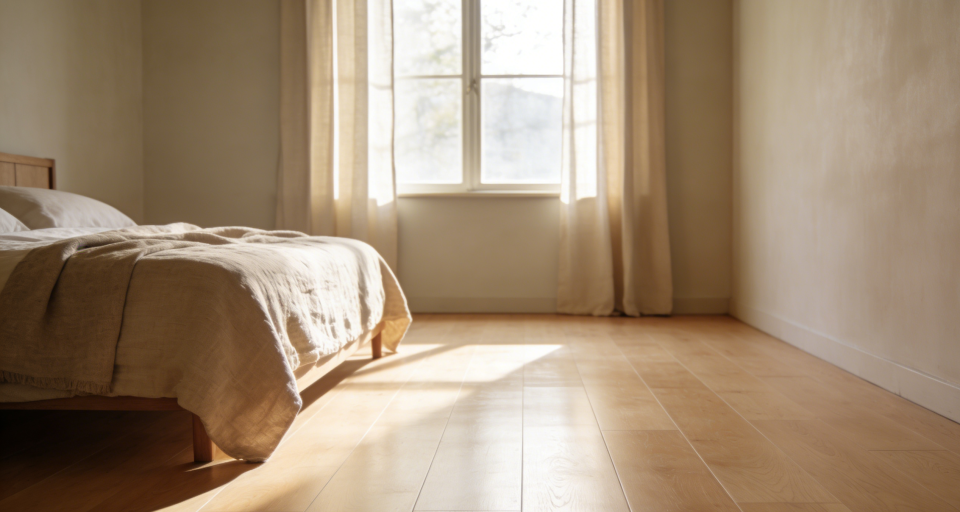 4. 深色地板/亮面砖 → 浅色哑光质感当道深色地板极易显灰尘,亮面瓷砖则光污染严重。当下主流是选择浅原木色地板或浅灰色哑光/柔光瓷砖,不仅视觉温和高级,也更耐脏易打理。