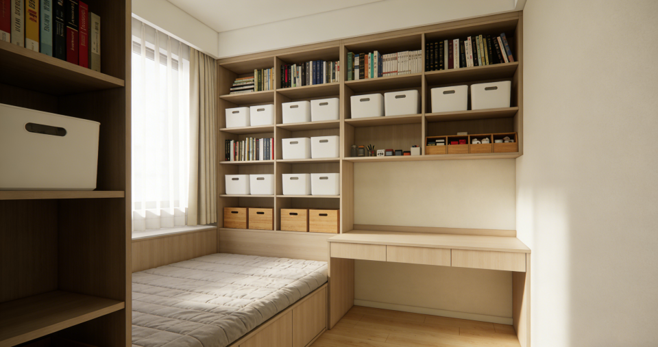 5. 独立家具填充 → 注重整体功能定制过去习惯用独立家具填满空间,容易显乱且利用率低。现在更注重根据户型量身定制多功能家具,如榻榻米结合书桌、卡座结合餐边柜,最大化利用每一平米。