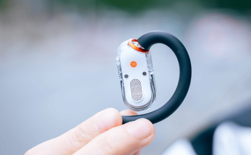 该款耳机外观采用未来美学设计,风格定位是潮酷极简。4档可调节耳挂结构,实测对不同耳型适配性良好;机身是高弹亲肤的材质,柔韧性好不易弯折。单耳克重是10.1克,在长期佩戴测试中,耳朵会有轻微的压迫感。