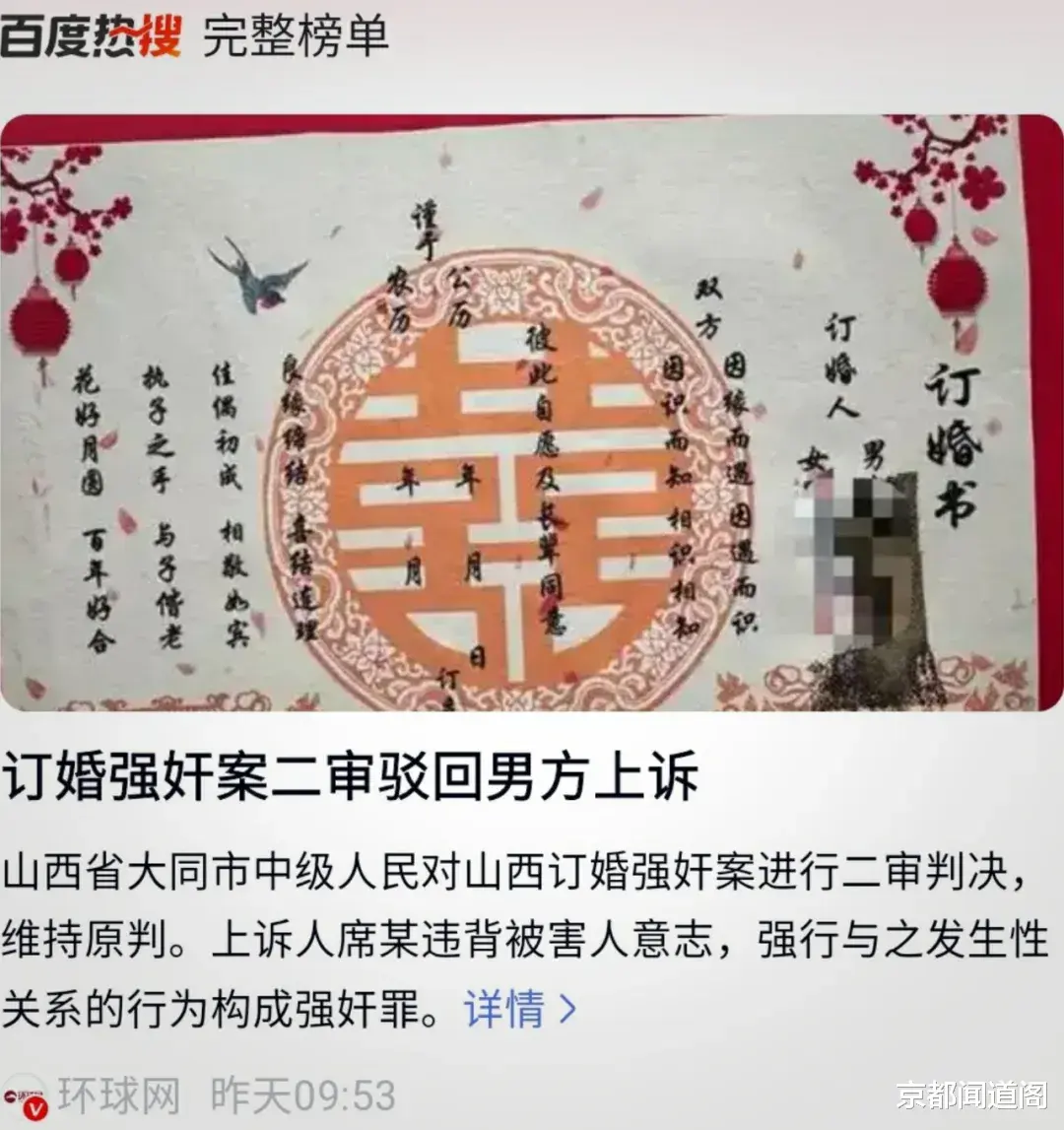 在舆论的持续聚焦与公众的热切期盼中,山西“订婚强奸案”二审终于落下帷幕。据央视新闻报道,4月16日,大同中院依法对上诉人席某某强奸案公开宣判,裁定驳回上诉,维持原判。同日,本案所涉婚约财产纠纷案二审宣判,二审法院认为一审判决认定事实清楚,适用法律正确,同样判决驳回上诉,维持原判。回溯至2023年12月,该案一审便已宣判,被告人席某某被以强奸罪判处有期徒刑3年。