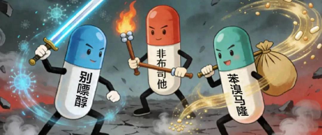 别嘌醇和非布司他,是两位抑制尿酸生成的高手;苯溴马隆,则是促进尿酸排泄的达人。