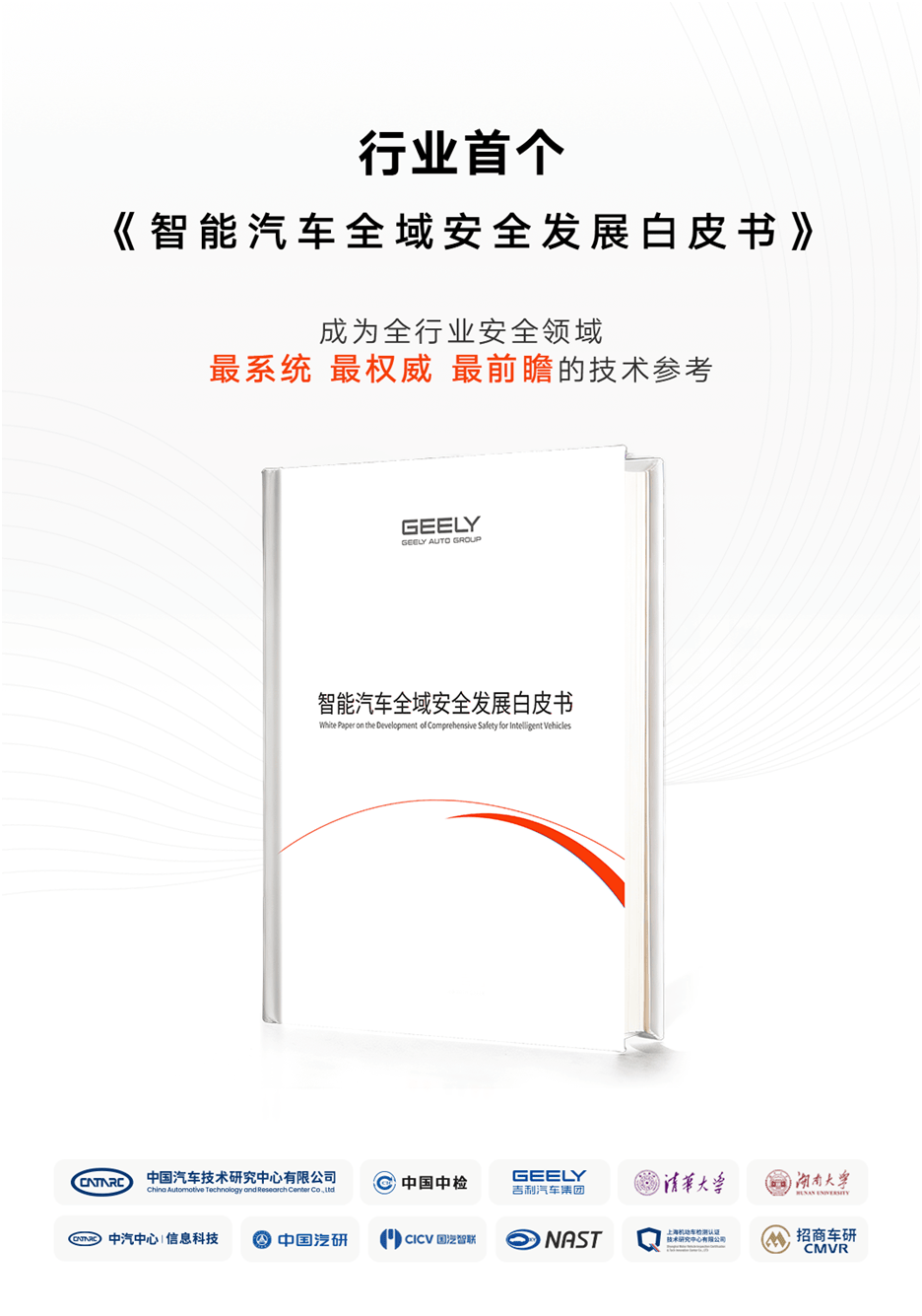 这一开放理念,也体现在与中国汽车技术研究中心、中国检验认证集团、清华大学等机构联合发布的《智能汽车全域安全发展白皮书》中。白皮书以“以人为核心”为出发点,系统梳理智能化带来的新风险与新需求,为行业提供兼具战略高度与实践路径的安全发展框架。