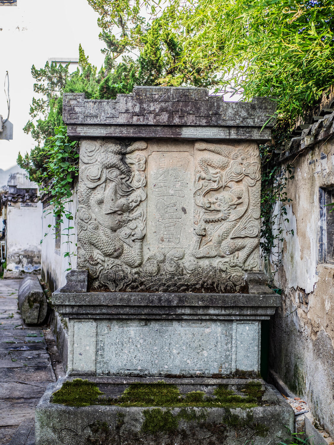 在棠樾,每走几步就能撞见惊喜。巷口的石库门上方,砖雕的"渔樵耕读"还清晰可见,渔夫甩竿的动态、樵夫扛柴的姿势,仿佛下一秒就要从墙上走下来。墙角的拴马石,凹槽里还留着缰绳摩擦的痕迹,让人想象当年鲍家子弟骑马归来时的意气风发。有些老宅的木雕窗棂已经残缺不全,但剩下的蝙蝠、铜钱图案,依然固执地传递着古人对福气的期盼。