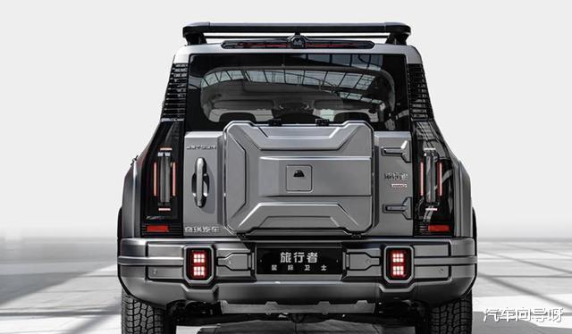 捷途公司说,旅行者星际卫士这款车的车身设计挺特别,用的是镂空架子,这样方便以后根据需要改装和扩展。车屁股那儿能装上铝合金的储物箱子,车身上还能额外加上铝合金的梯子跟车顶平台,都挺实用的。