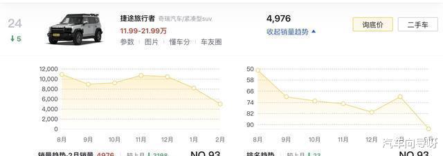 懂车帝最新销量榜透露,2月份捷途旅行者卖出了4976台。说到捷途旅行者星际卫士这款车,它比常规版多了几分越野范儿。要是咱先不管车身骨架的事儿,这车跟坦克300(起步价19.98万)、北京BJ40(起步价13.98万)这些能改装越野的车型,算是棋逢对手了。大家觉得旅行者星际卫士的预售价格咋样?来,评论区聊聊你的看法。