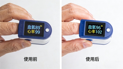 我还特意用血氧仪测了,我妈使用前血氧值是89,吸了十几分钟后,血氧值就升到了96,效果很明显,她也说胸闷气短的感觉缓解了很多,呼吸更轻松了。