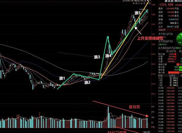 小盘股倒是今天市场里的一抹亮色。中证2000指数涨了1.554%,调整了一天的微盘股也反包上涨,但别高兴太早。从技术面来看,小盘股已经走出了五浪结构,现在正处于第五浪延长阶段。换句话说,这一轮上涨基本进入了“强弩之末”。再看指数的支撑线和量能指标,这些迹象无一不指向一个事实:小盘股后续调整的概率很高。投资者想靠它们“接着冲”是不太现实了。
