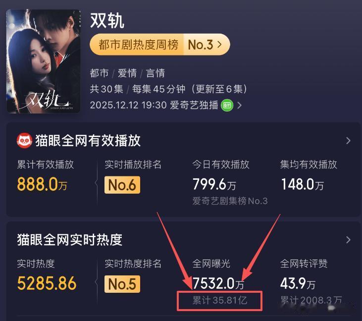 先看这组数据,你就知道《双轨》有多疯。