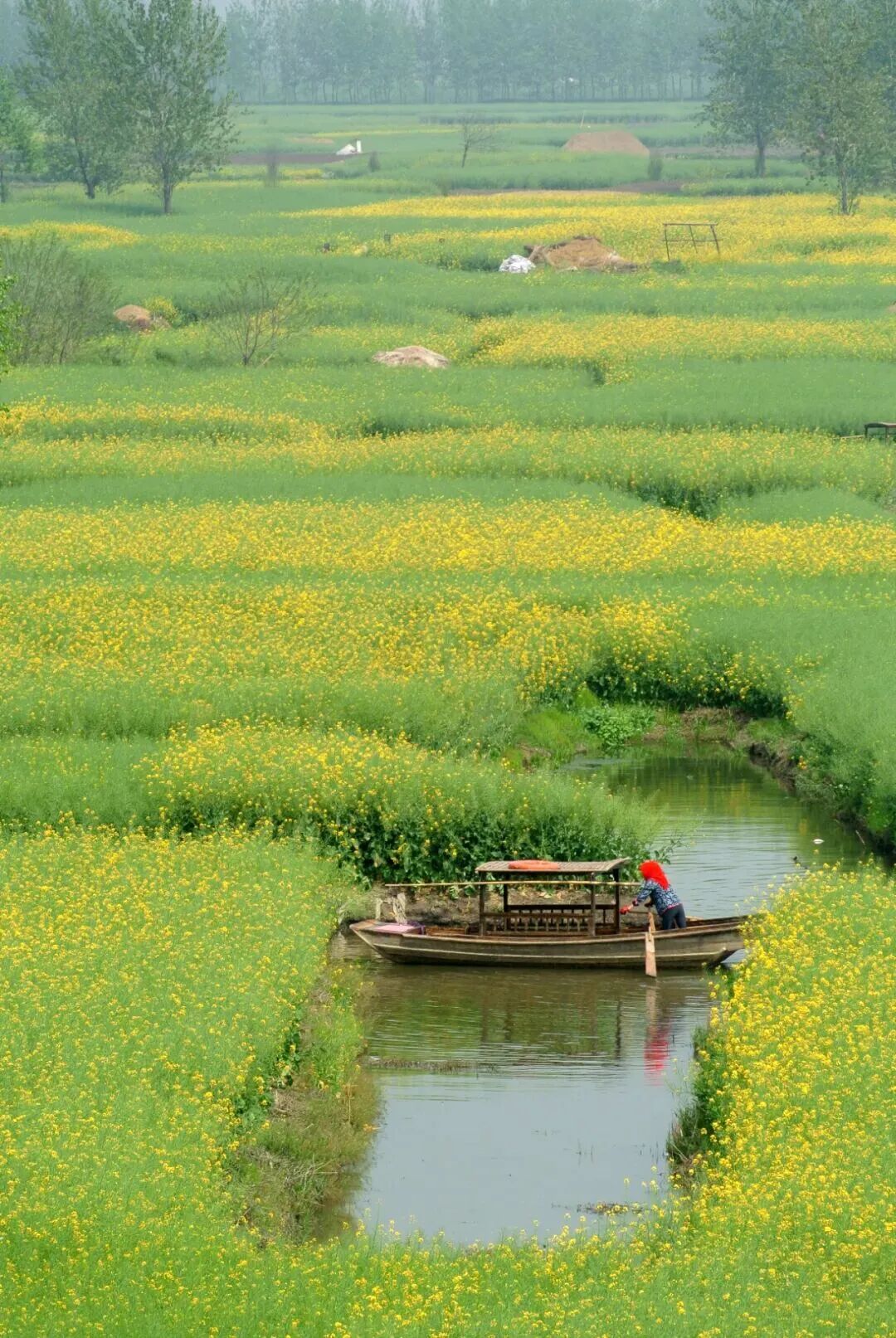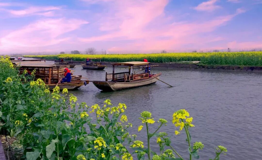 坐上船娘划的扁舟,穿行于菜花垛田间,花香弥漫水面,春意扑面而来。在满眼的金黄和摇曳的小船上,一边感受亲和的杨柳风,一面听着船娘摇橹的咿呀声,仿佛时光都慢了下来。