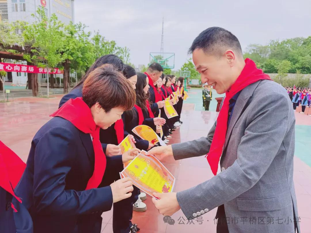 春风送暖百花开,在全校师生的热情参与和共同努力下,经过两天的激烈角逐,顺利地完成了各项比赛,最终在收获和荣耀的光辉下落幕,孩子们在运动中收获了快乐、自信、友谊,更收获了运动的精神。4 月 20 日上午,信阳市平桥区第七小学全体师生齐聚操场,举行了第八周主题升旗暨第五届春季达标趣味运动会闭幕式。