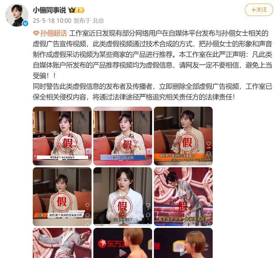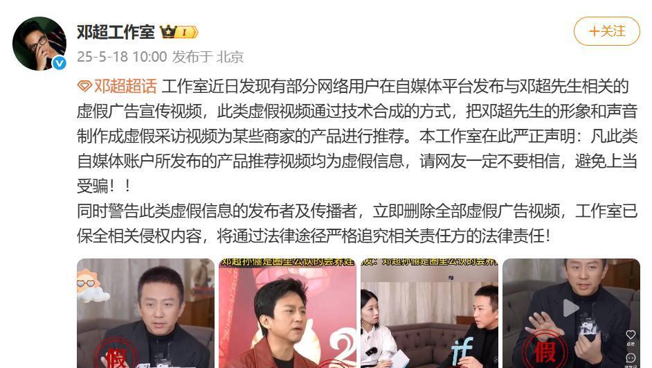 孙俪和邓超工作室突然发了个声明,直接把一堆自媒体账号挂了出来。 原来有人用AI技术把两口子的脸和声音合成到视频里,一本正经地推荐什么“茯苓秘洛方”“瑞上氨酸”之类的保健品,连台词都编得有模有样,讲养生、聊育儿,看得网友差点信以为真。工作室急得直喊话:“这些全是假的! 千万别上当!”