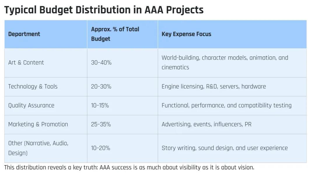 据葡萄君了解,此前,在3A游戏开发中,美术相关资产(如角色场景建模//动画特效/UI/过场等)可达项目总成本30%~40%,如果是开放世界游戏,这个比例还会更高。这其中还有很多是试错成本,比如美术、玩法交互不符合需要,就得推倒重来。