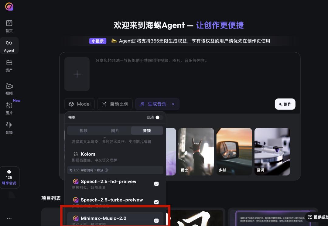 此前,MiniMax旗下的海螺Agent已完成对海螺模型、MiniMax Speech以及Music模型的系统级接入,率先在产品侧验证了“对话式音乐创作”这一全新形态:用户无需具备专业音乐训练,只需通过自然语言交互,即可完成从创意表达、风格选择到音乐生成的全过程。这种模式一旦成熟,将意味着音乐产品从“工具”向“协作系统”的转变,其想象空间远未被穷尽。