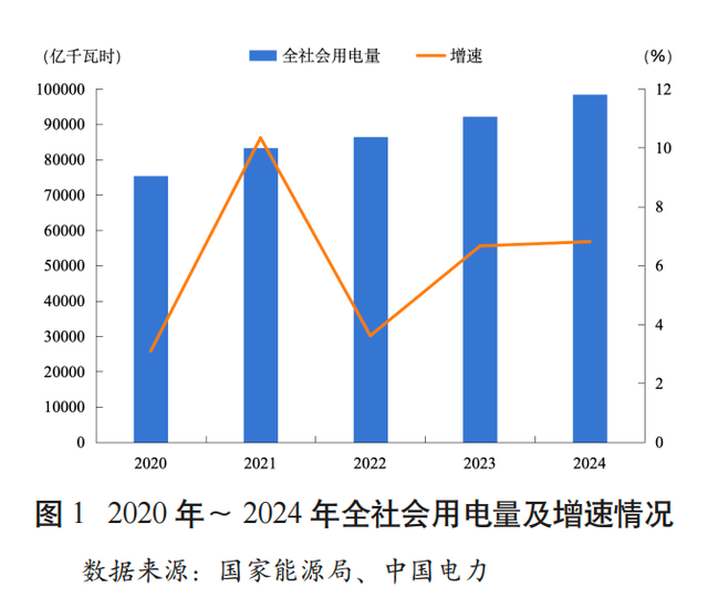 电力是工业的血液。电力的供应充足是经济运行的保障。2024年底全社会用电量是98521亿千瓦时,同比增长6.8%,创了历史新高。