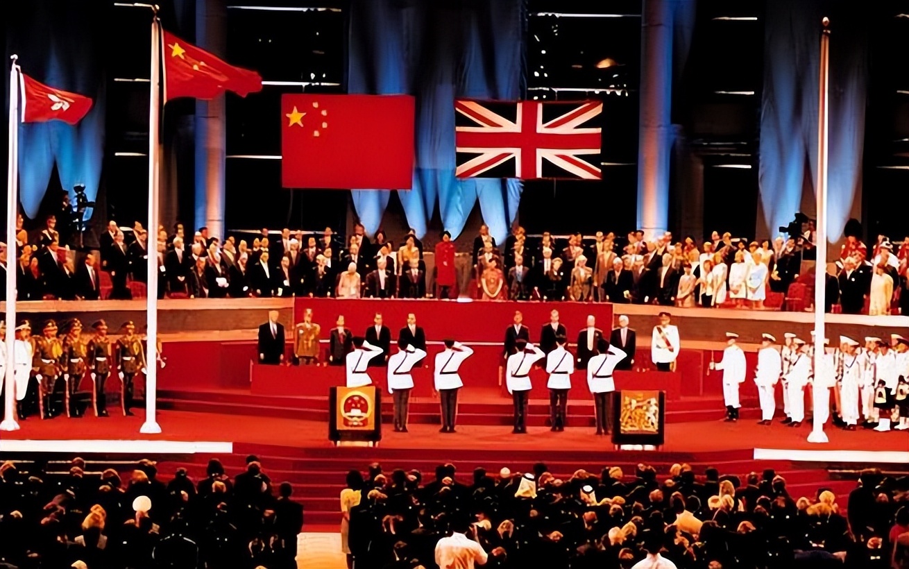 1997年7月1日零时,大雨倾盆的香港会议展览中心内,英国查尔斯王子凝视着英国国旗徐徐降下,五星红旗冉冉升起,这座给大英帝国带来一百五十多年历益的岛屿,终究“物归原主”。
