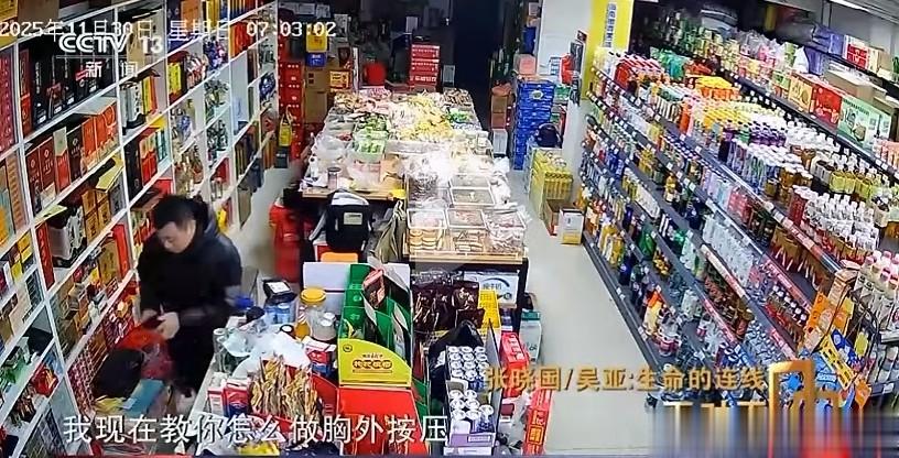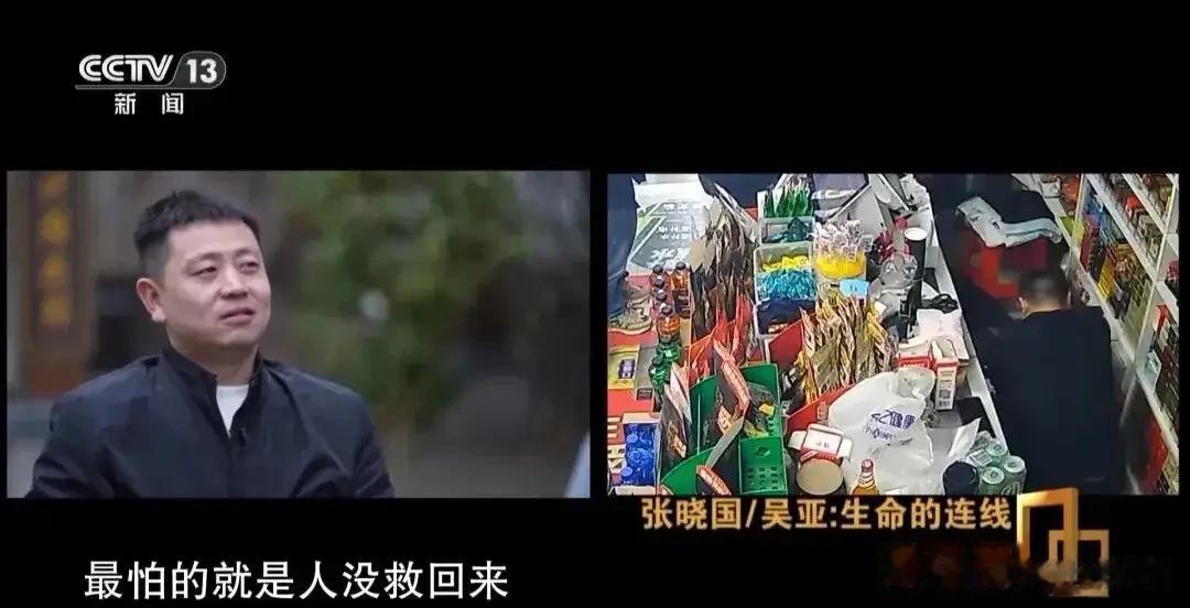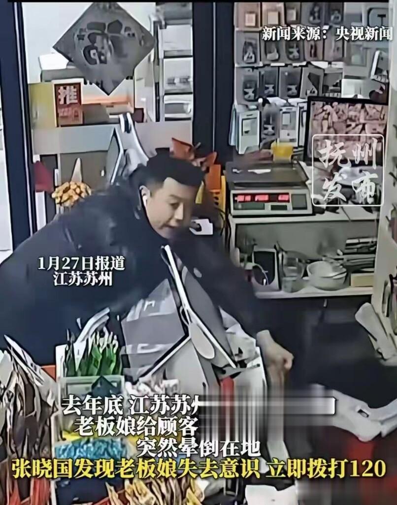 当时,张晓国来超市买东西,老板娘主动给他抹去了一块钱零头,也正因为这个行为,让张晓国并没有拿完东西就走,而是留下来了十几秒,跟老板娘说了几句话,也正是这几秒钟的关键时刻,老板娘突然就晕倒了。