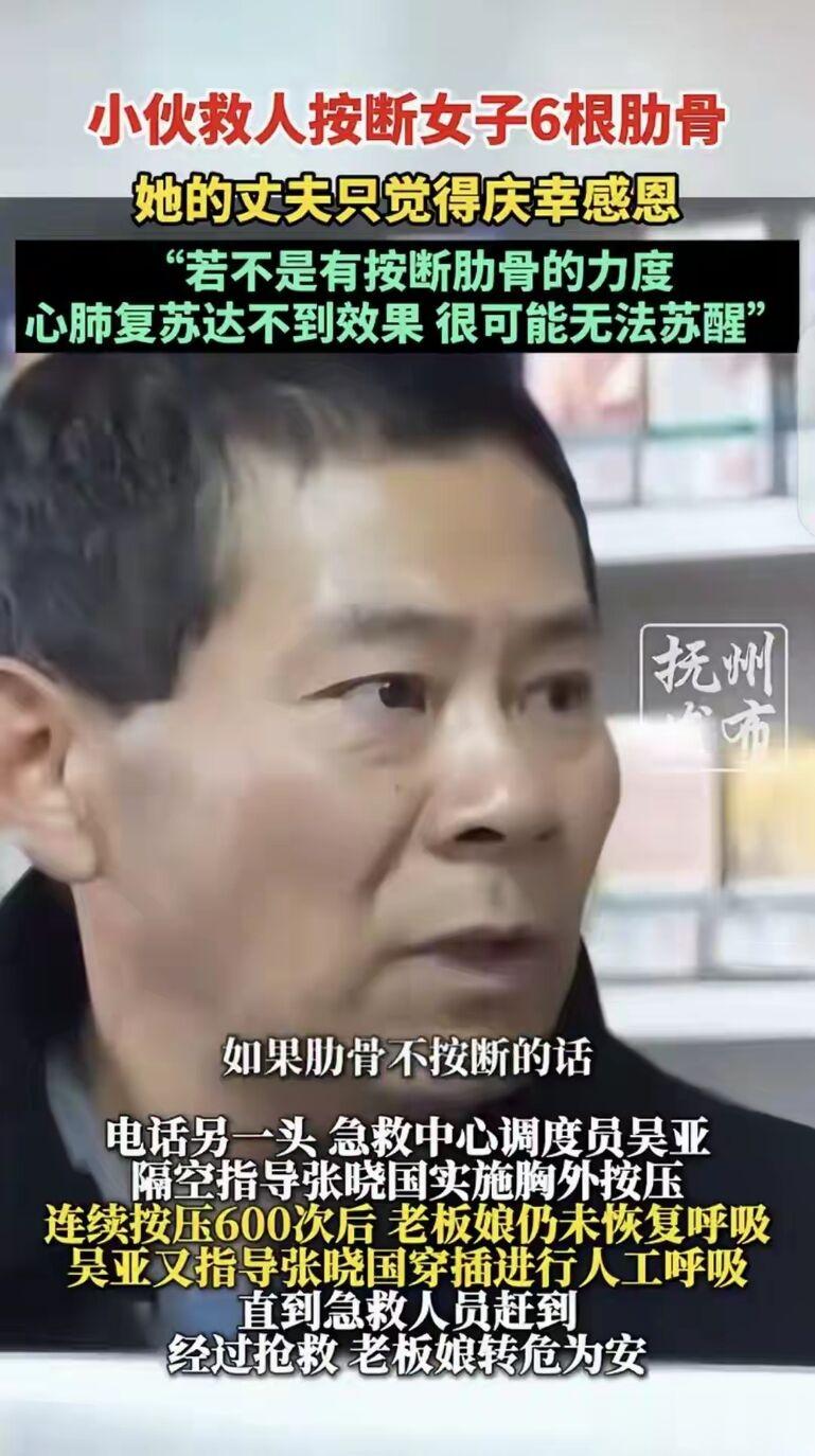 他说,虽然妻子断了6根肋骨,但他不会去怪张晓国,反而更应该感谢他!