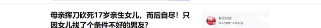 信息源:《母亲挥刀砍死17岁亲生女儿,而后自尽!只因女儿找了个条件不好的男友?》新文化报