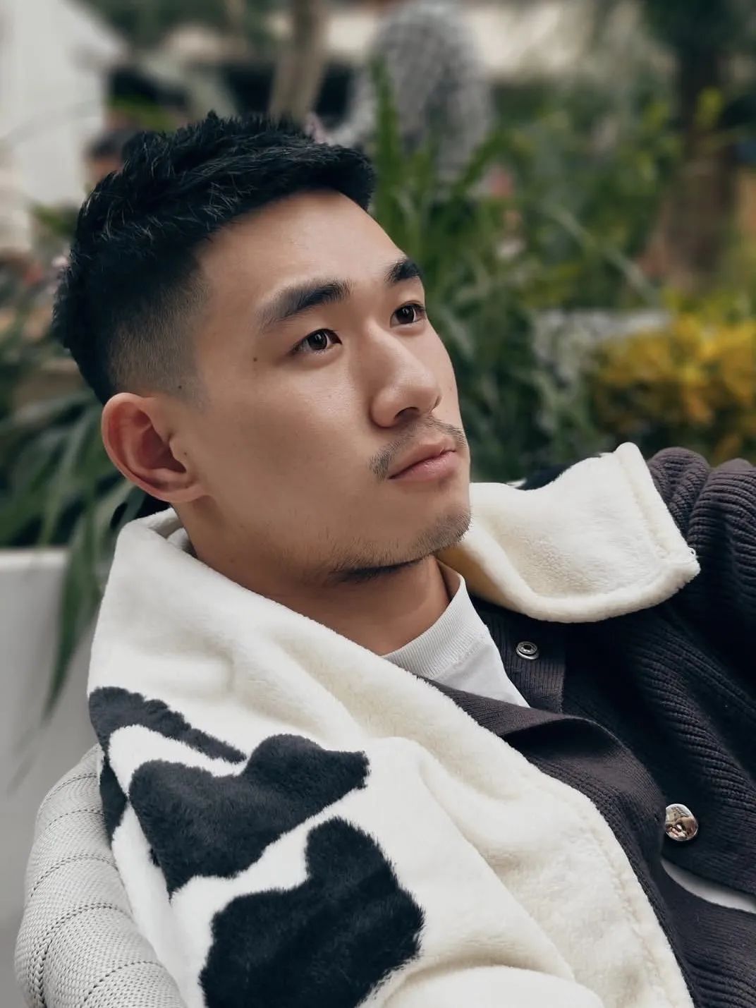 生活中的他,同样魅力四射。穿着简约白T站在陈列架旁时,阳光透过玻璃,柔和地洒在他身上。他微微皱着眉,专注看向陈列物品的侧颜,高挺的鼻梁,线条流畅的下颚,每一处都散发着安静又迷人的气息~披着黑白相间毛毯的他,窝在角落,眼神深邃又温柔,仿佛藏着无数故事,让人忍不住想要靠近。而身着黑色T恤站在绿树之下,他双手插兜,身姿挺拔,与周围的绿意相互映衬,自然又随性的赶脚。