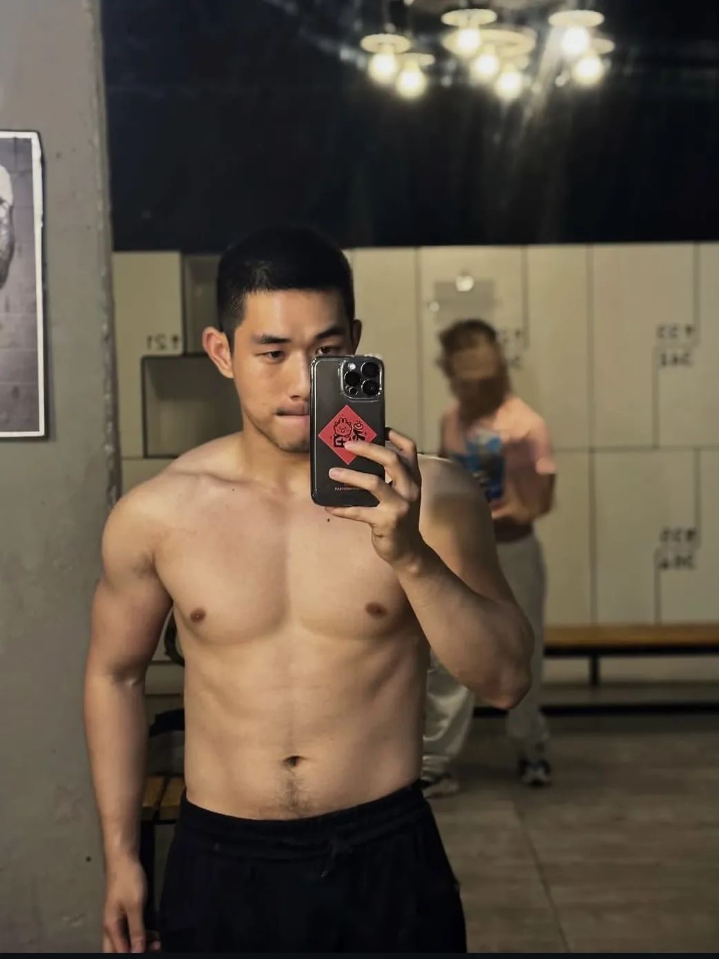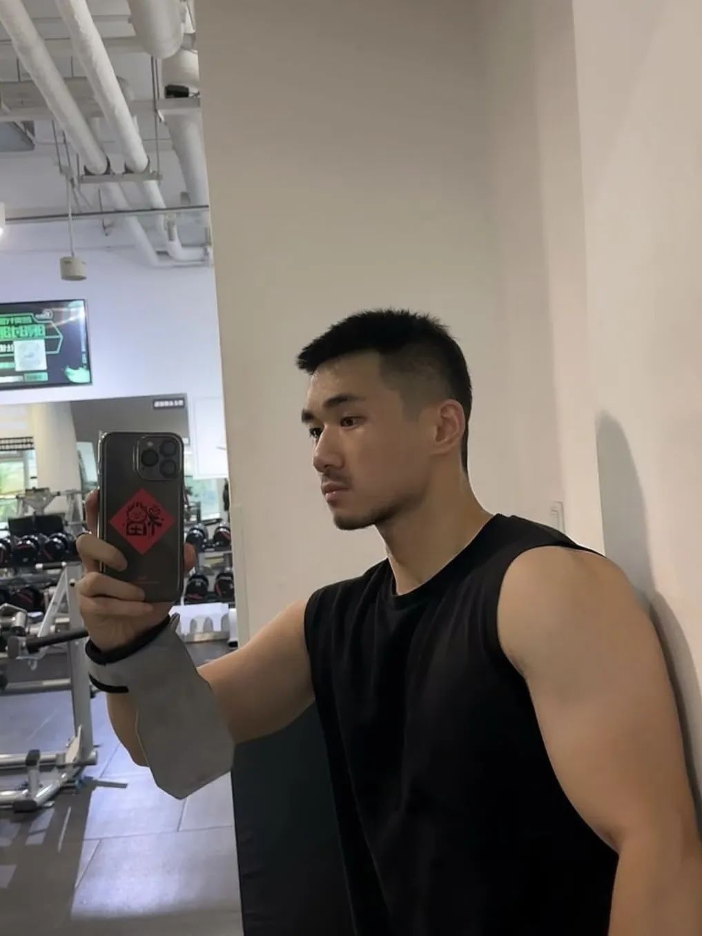 他对镜自拍的样子,真的绝了!在健身房那张,穿着背心和灰短裤,一只手稳稳拿着手机,另一只手随意搭在器械上,手臂上的肌肉线条因为姿势的缘故显得更加明显,那是长期健身留下的勋章。汗水微微浸湿背心,灯光洒在身上,氛围感直接拉满,仿佛在无声诉说着他对健身的热爱与坚持。。还有在储物柜前那张,他赤裸着上身,胸膛宽厚而结实,带着一丝刚运动完的潮红。腹肌虽不是那种刀刻般的分明,可那恰到好处的肉感,让人感觉格外真实,满满的男友力!