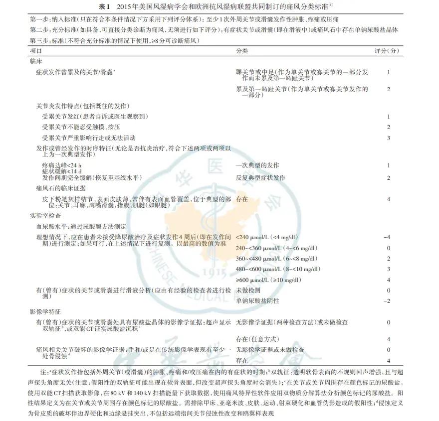 确诊标准:也是直接确诊指标,是否在关节液或痛风石观察到尿酸钠晶体。