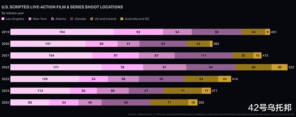 即使算上海外拍摄,美国影视剧的产量也已经低于最低谷的2020年。