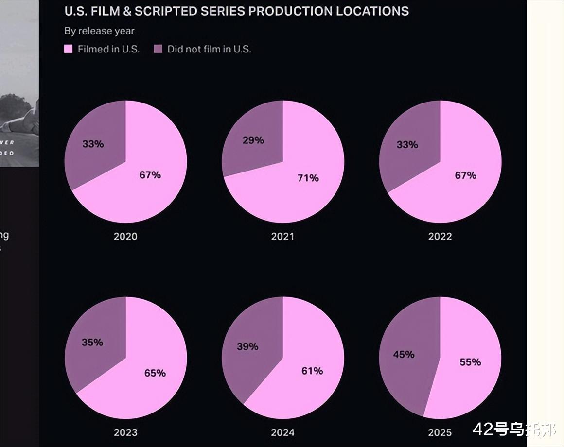 随着美国本土的影视剧产业空心化,好莱坞逐渐放弃本土拍摄,海外拍摄的比例从33%飙升到45%,而且还会继续上升。