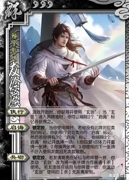 首先第一位就是友徐庶,友徐庶是标准的过牌武将,【启诲】每用两张牌就摸两张。如果是爆发能力不足的农民组合看见他,那就是纯看他一个人的表演,纯粹是被折磨,谁喜欢又臭又长的等待其他人独舞呢?