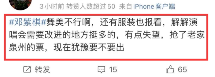 除了摔倒走光、情绪崩溃之外,粉丝们还吐槽说:“当晚的演唱会舞美也不行,服装也没有看头,音响还挡住了大屏幕,不知道后续会不会改进?”