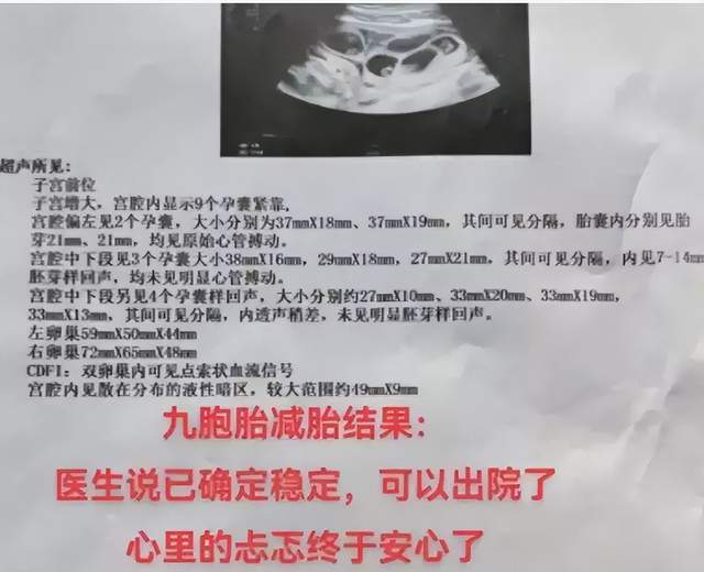 医生认为,九胞胎对于产妇风险极大,建议进行减胎手术。侯女士及其丈夫在听取医生建议后,决定进行减胎。