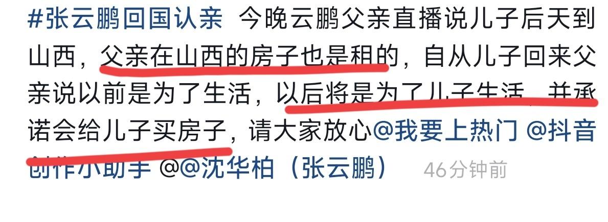 结语张云鹏17号就要离开了,父亲非常希望儿子能够回来,还在直播中承诺,如果张云鹏回来,一定想方设法给他买一套房子,当然也要尊重张云鹏的个人意见。