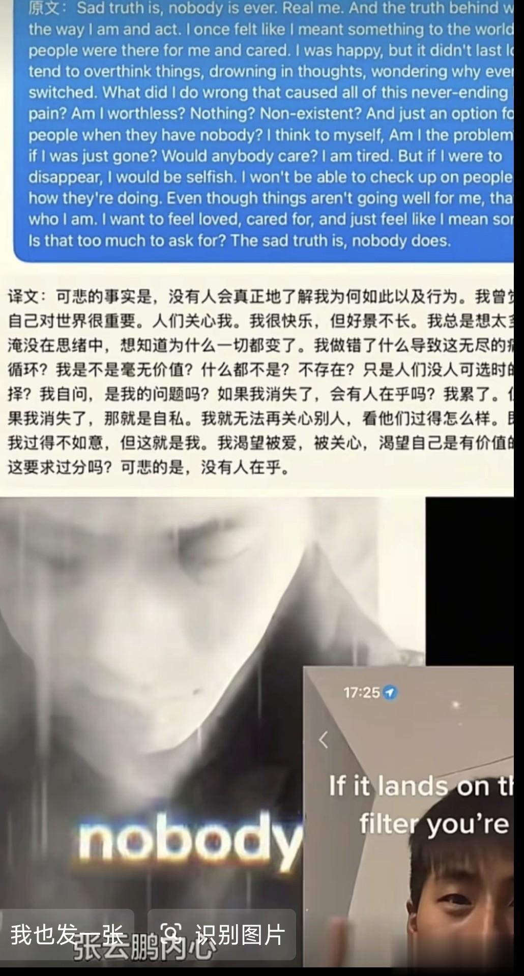 他曾一度陷入自我怀疑中,没有亲人陪在身边,没有人关心他,觉得自己毫无价值,甚至说出了“如果我消失了,会有人在乎我吗?”