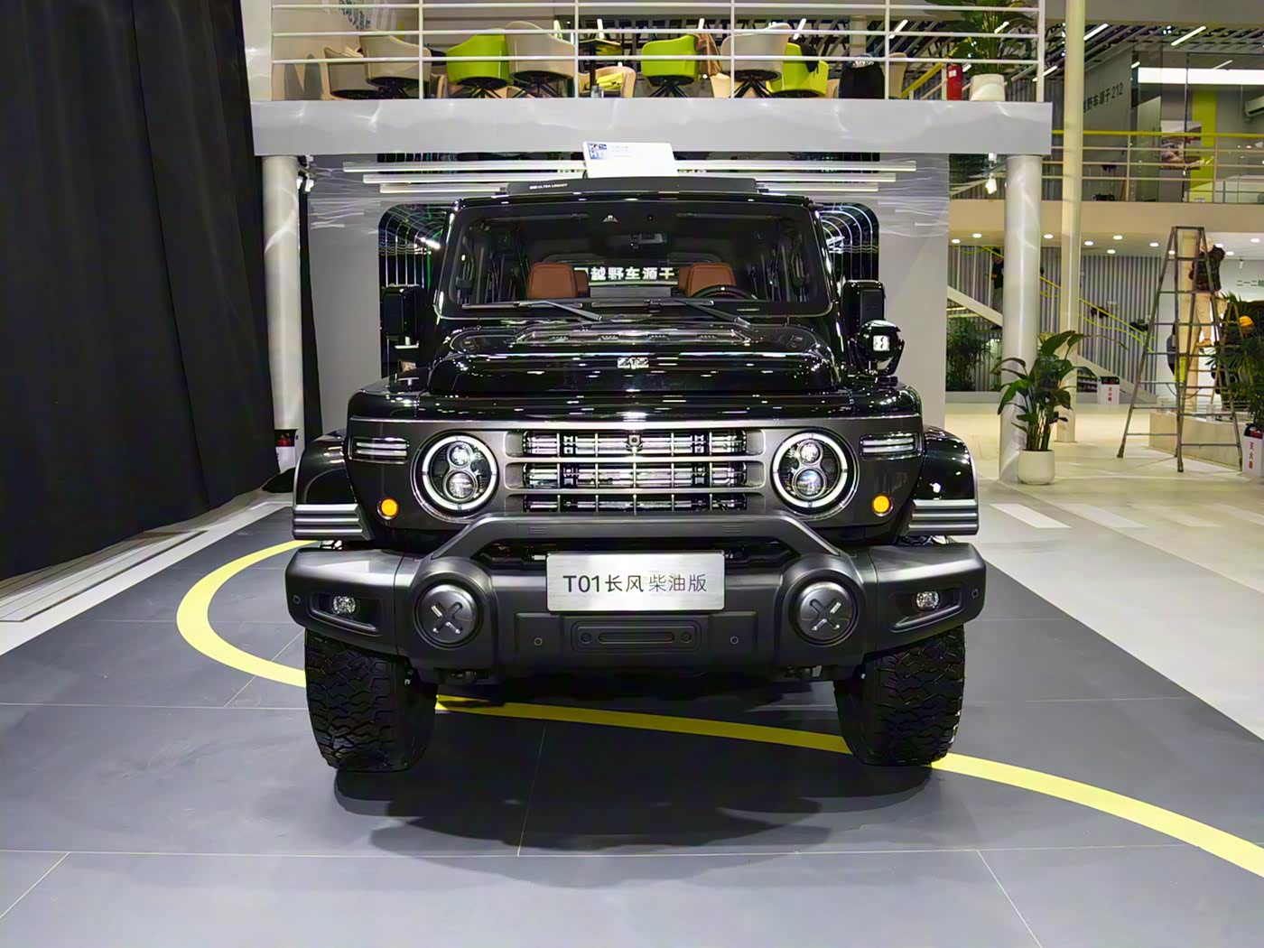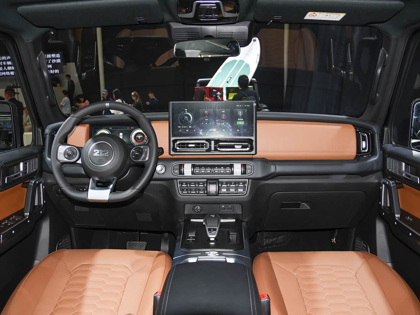 我们首先来看新车的外观设计方面,车头设计是212 T01最显著的复古符号。蚌式发动机盖保留了经典的三道杠中网,搭配分体式圆灯,内部嵌入LED光源,既致敬了老款212的原始美学,又提升了夜间照明效果。前保险杠经过加宽和强化,采用铁质材质,显著提升了接近角至40度,确保在攀爬障碍时避免车体受损。顶部增设的防空灯支持多角度旋转,增强了复杂地形下的视野覆盖,而隐藏式绞盘选装件则进一步强化了脱困能力。这些设计共同营造出粗犷而实用的视觉冲击力,彰显了越野车的本质。