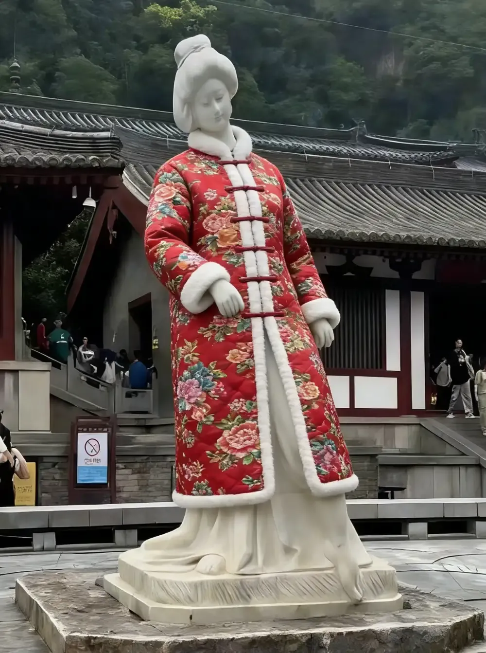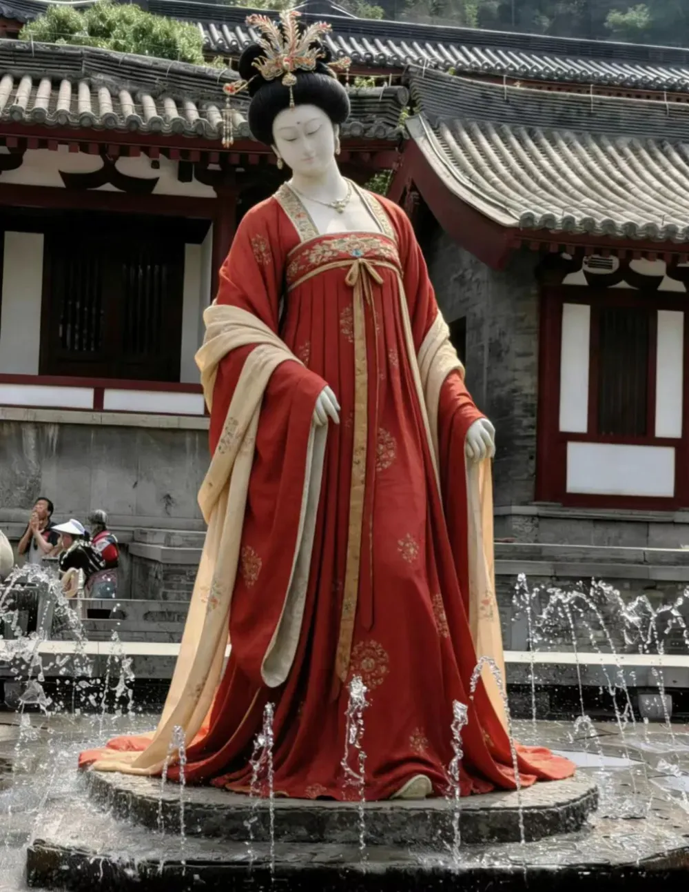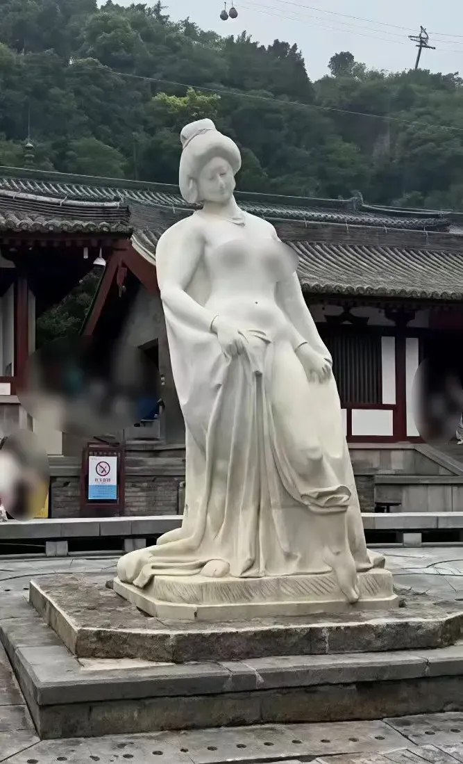 袒胸露乳的杨贵妃,完全不符合大众对贵妃端庄优雅的传统印象。这叫什么呢?这叫亵渎历史文化,衣不蔽体的贵妃塑像更是有伤风化,甚至让部分女性网友感觉到了对女性群体的精神冒犯,质疑景区是不是想擦边博出位?
