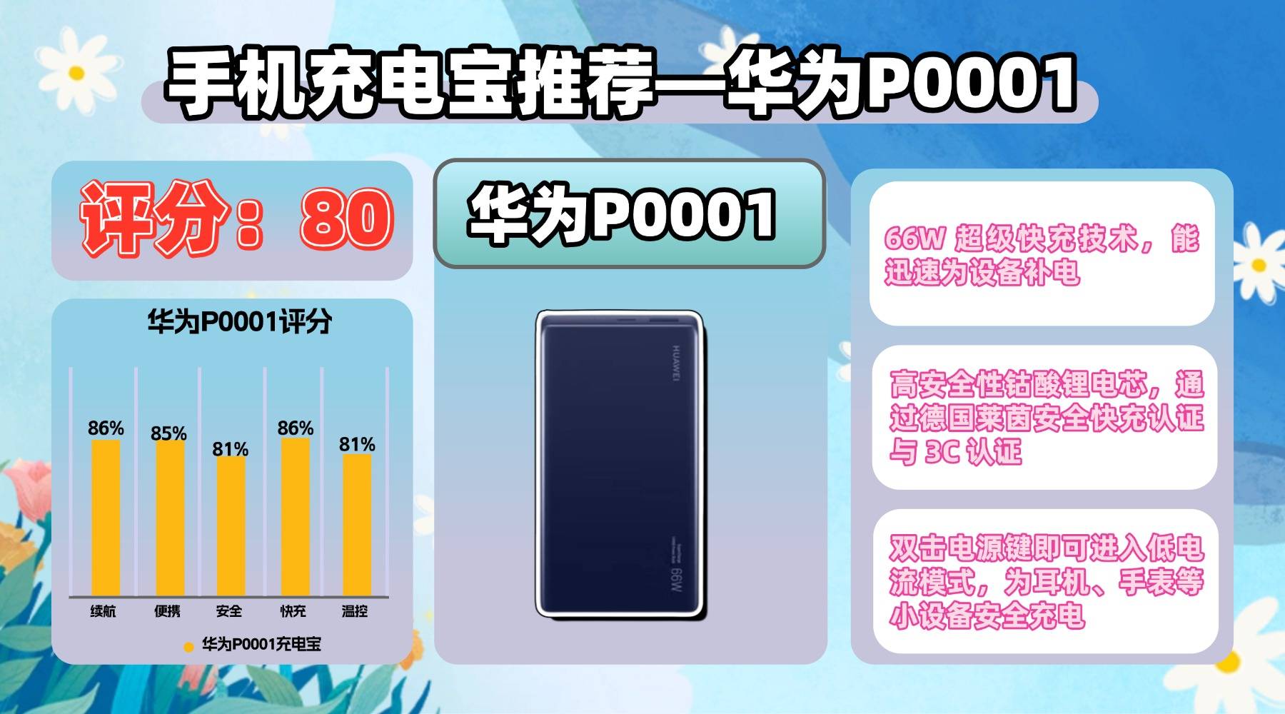 华为P0001电池容量12000mAh,额定6600mAh,支持66W超级快充,德国莱茵和3C认证保证安全。电芯采用优质钴酸锂聚合物,性能和耐用性较高。支持小电流模式,适合蓝牙耳机、手表等小型设备充电,操作简便。
