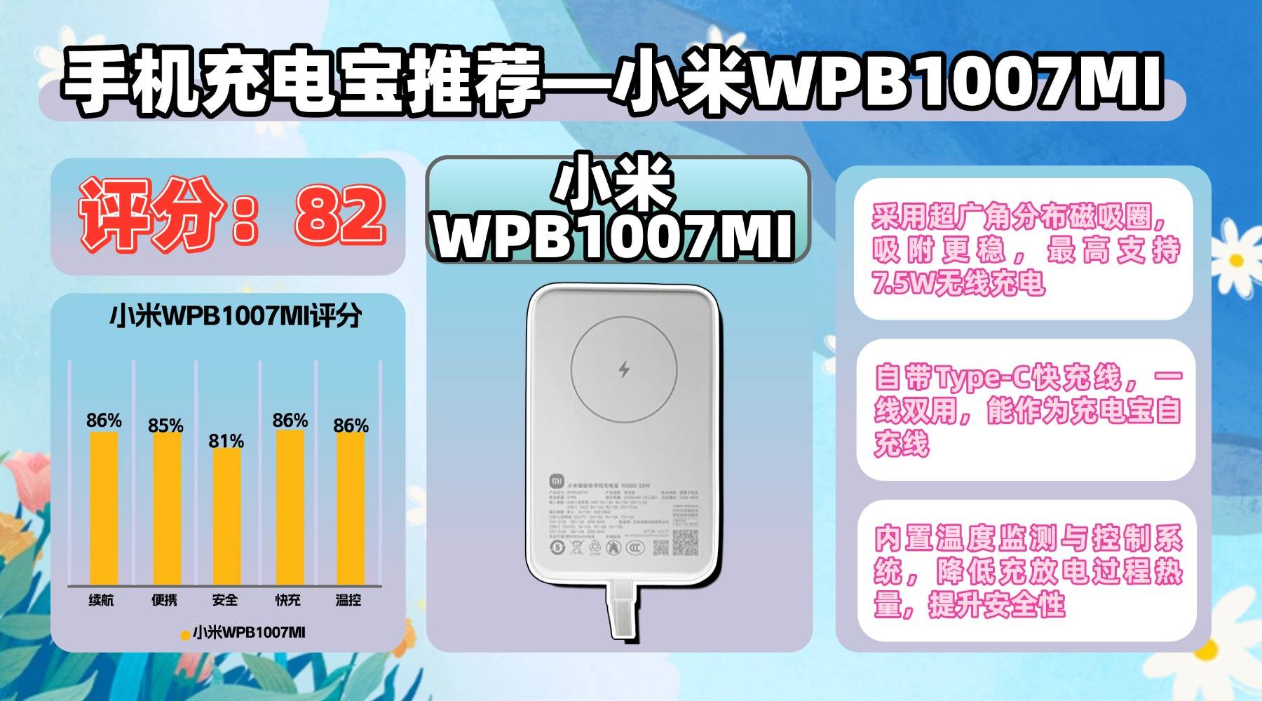 小米WPB1007MI容量10000mAh,额定5900mAh,可给苹果16Pro充满两次。磁吸充电设计便捷,配备13N MAX磁吸力,磁块超广角分布,无需摘壳即可精准吸附。无线充电功率最高7.5W,速度尚可。