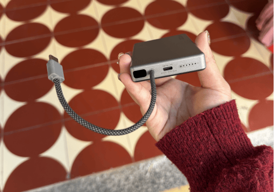 倍思这款的优势主要体现在便携体验上。机身厚度控制得比较克制,放进口袋或小挎包不容易顶出轮廓,日常随身携带负担不大。自带Type-C编织线使用频率很高,既能给手机充电,也能给充电宝本体回充,减少了“带线—收线”的来回操作。