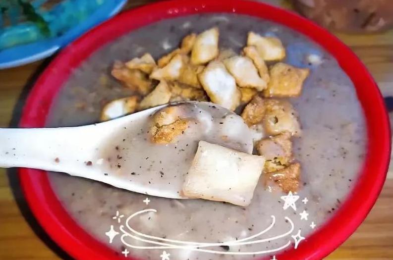 尽管名字里有“茶”字,但它更多是一种充满风味的糊状小吃。