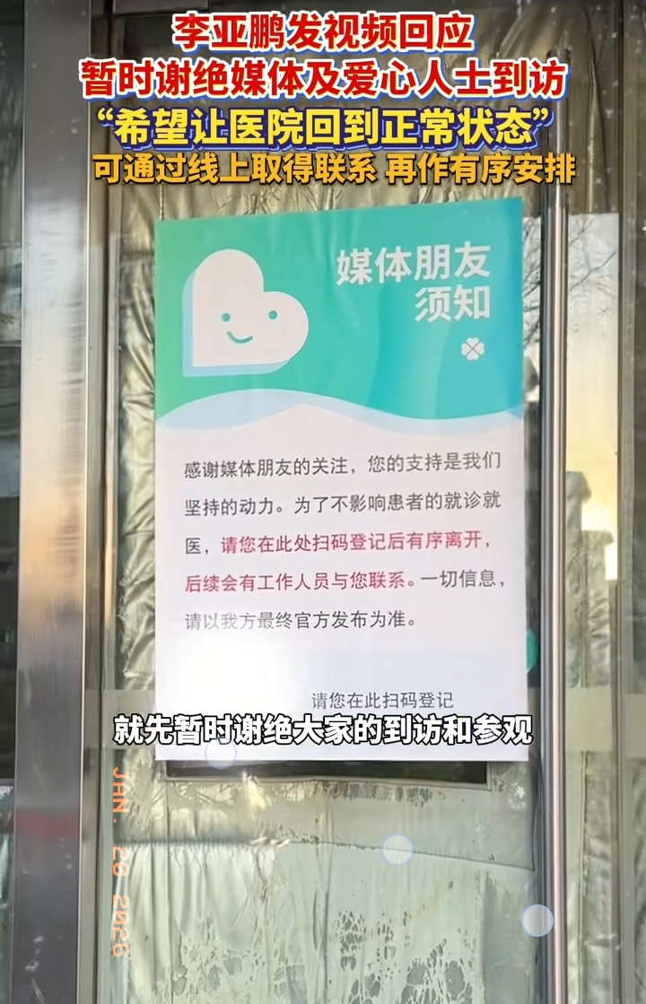 不过,随着众多新闻媒体、合作方和爱心人士前往医院,给医院正常工作带来影响。李亚鹏决定即日起暂时谢绝大家到访参观,让医院恢复正常,大家可通过线上官方渠道联系,做有序安排。